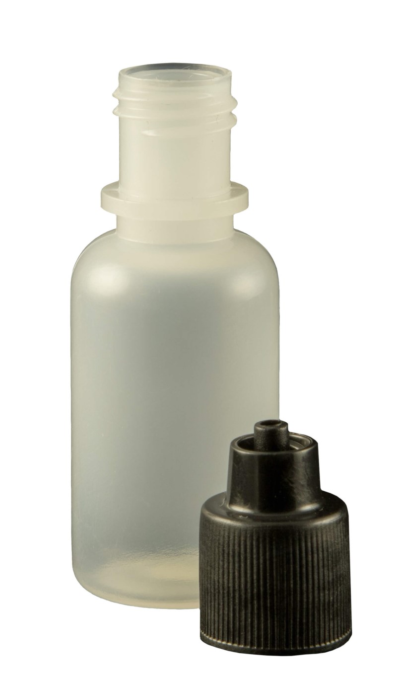0.5 oz. Bottle LDPE Boston Round w/ Black Luer Lock Cap Bag/10