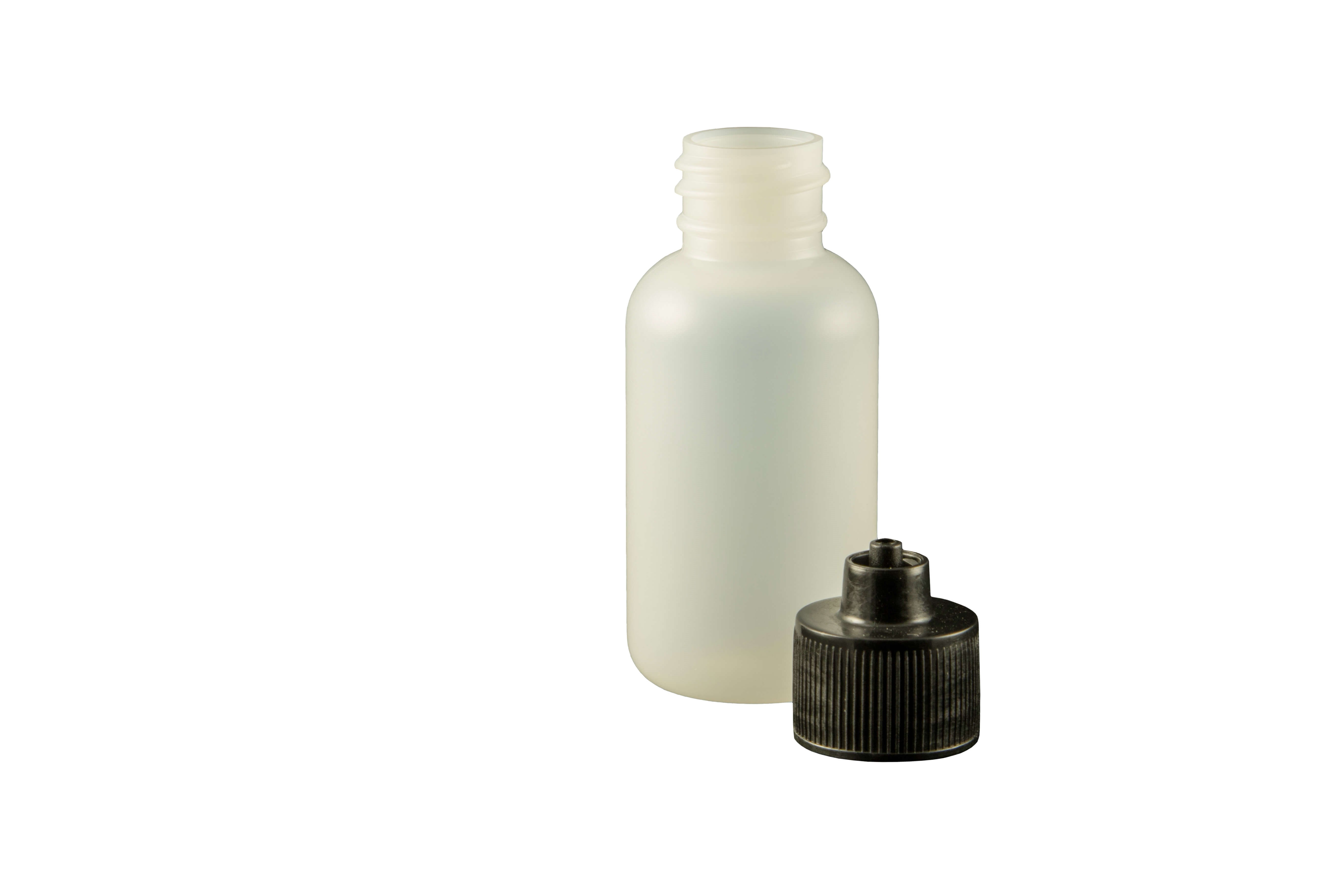 1 oz. Bottle LDPE Boston Round w/ Black Luer Lock Cap Bag/10