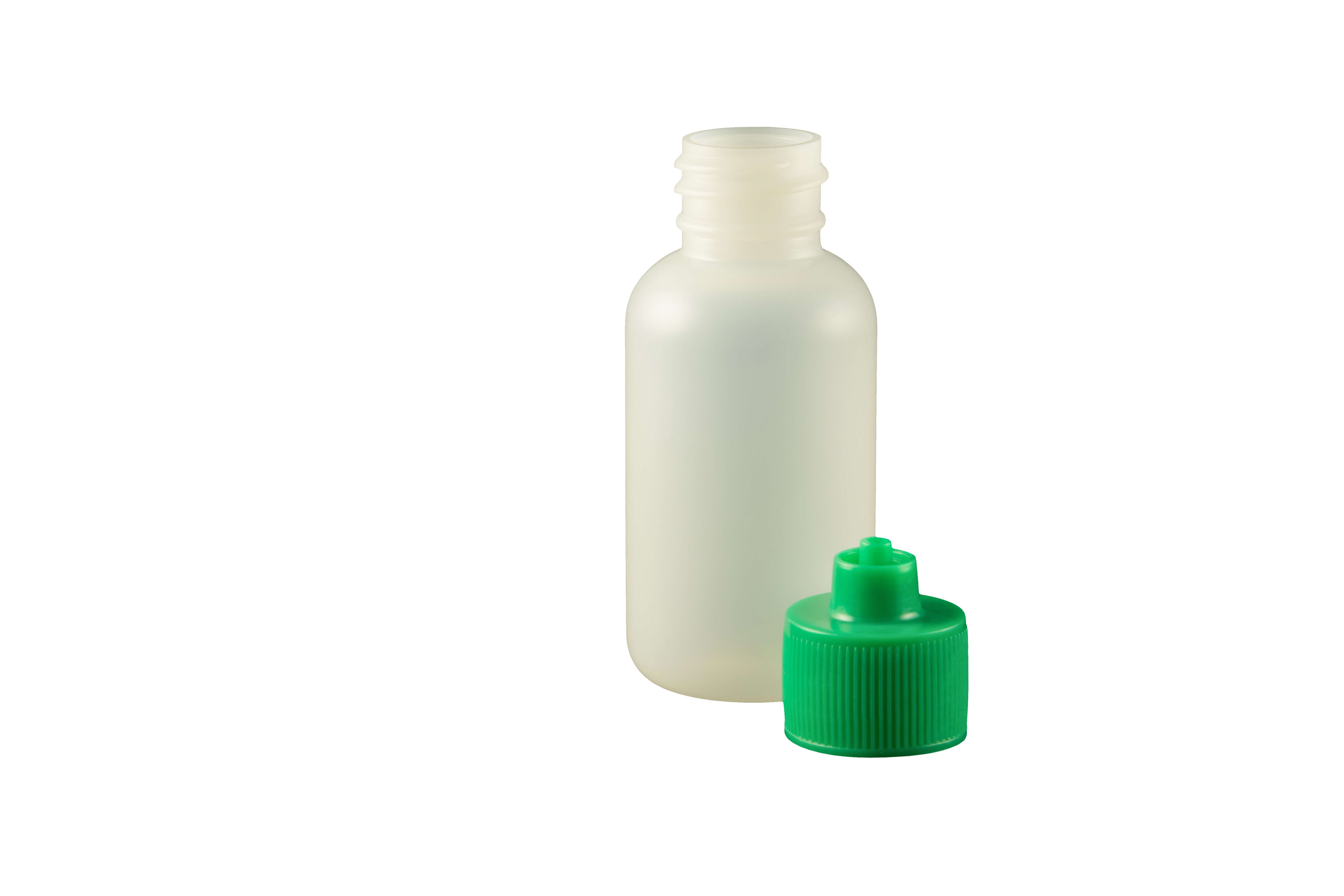 1 oz. Bottle LDPE Boston Round w/ Green Luer Lock Cap Bag/10