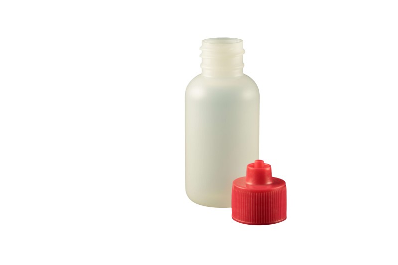 1 oz. Bottle LDPE Boston Round w/ Red Luer Lock Cap Bag/10
