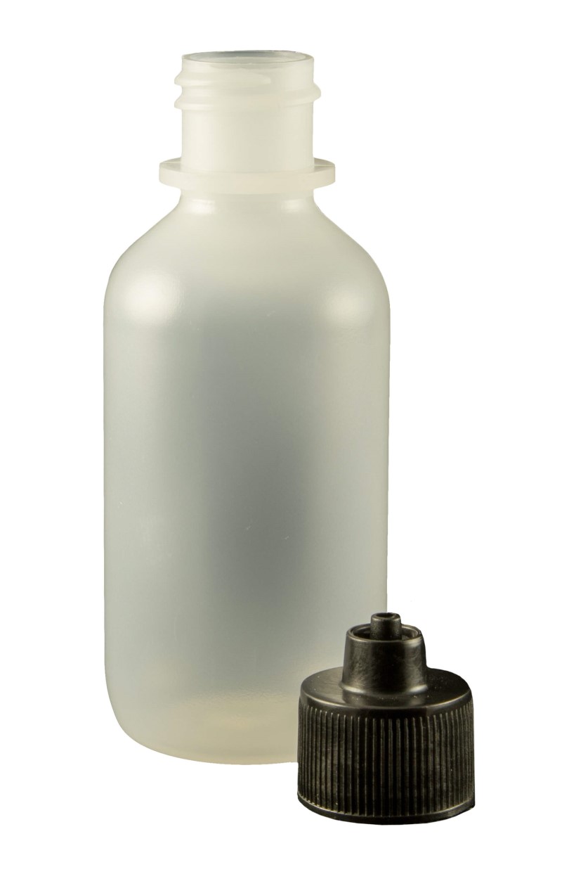 2 oz. Bottle LDPE Boston Round w/ Black Luer Lock Cap Bag/10