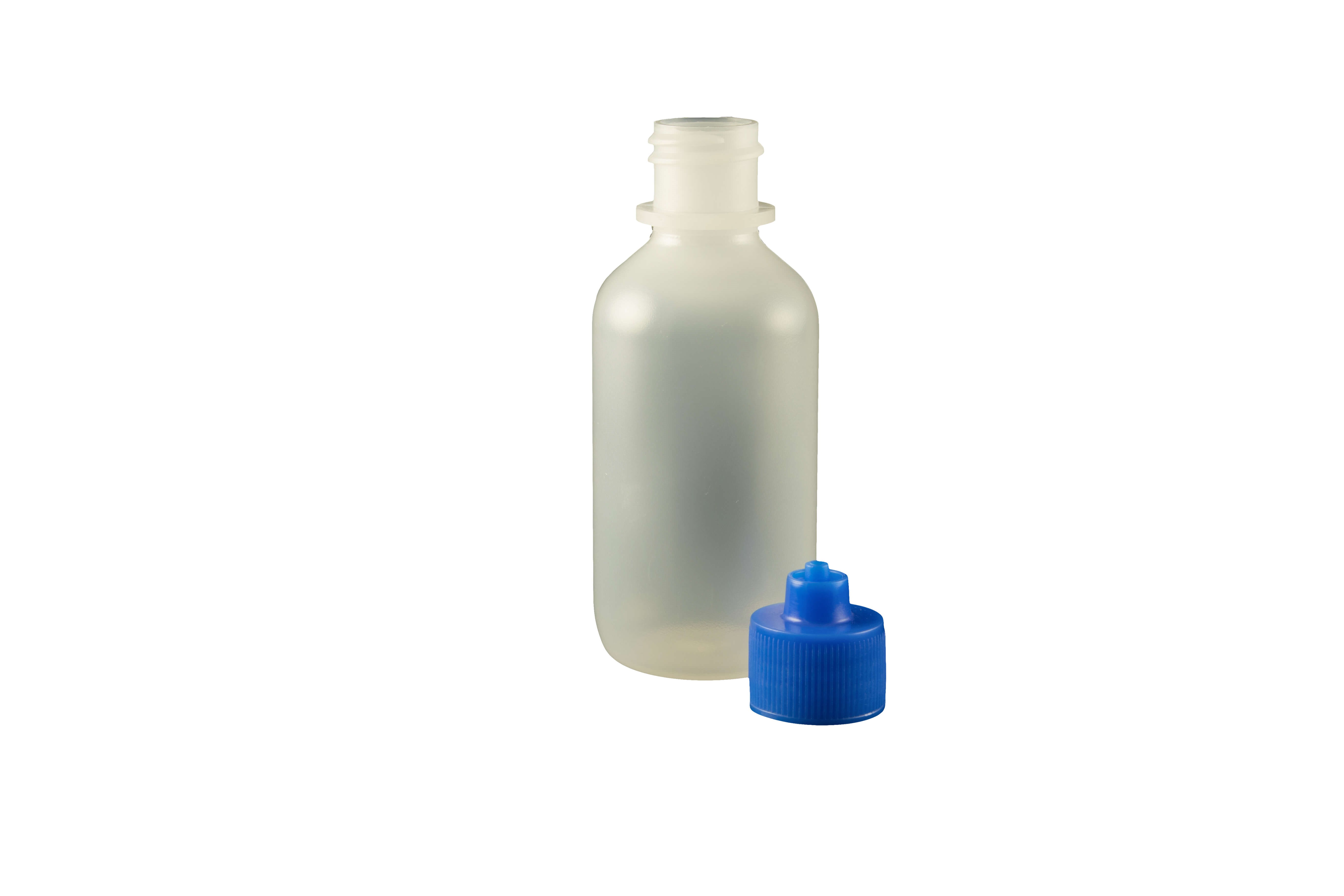 2 oz. Bottle LDPE Boston Round w/ Blue Luer Lock Cap Bag/10