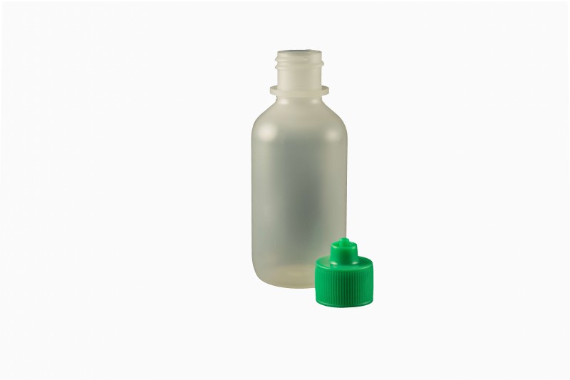 2 oz. Bottle LDPE Boston Round w/ Green Luer Lock Cap Bag/10