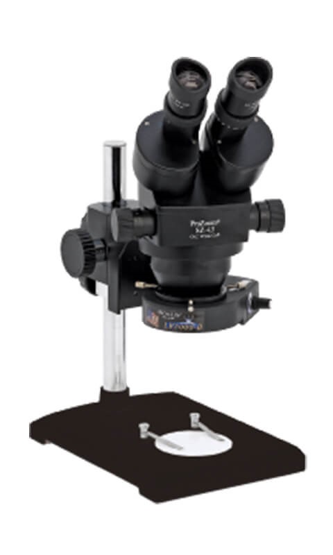 ProZoom 4.5 Stereo-Zoom Microscope; Extra-Large (22mm) 10X Eyepieces; Standard Range 7-45X (3.5 225X with optional parts); Lab Style Base\\\, Easy 360 main body rotation; 90-250mm working distance; 0.5 Auxiliary Objective Lens at no charge ($125 value); 5 Diopter Adjustable eyepieces to correct individual eyesight variations; 45 Eyetube inclination; ESD Safe Standard; Micro-Lite LV2000-B LED Ring Light