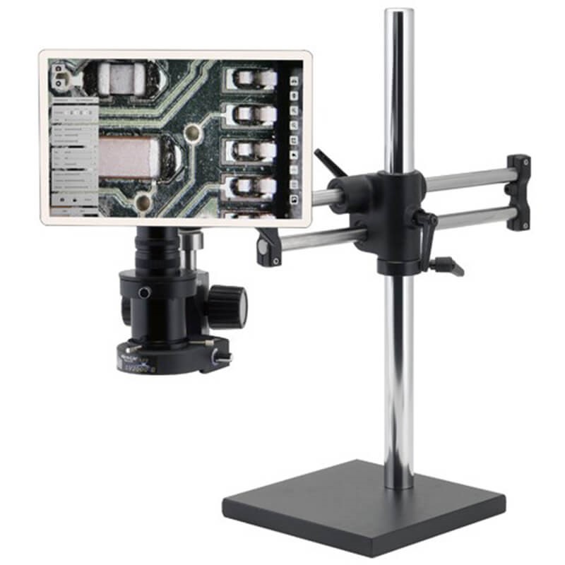 Super-Scope HD Integrated Inspection; Standard magnification range of 1-40X (up to 80X w/ options); Variable Focal Design Allows Unlimited Working Distance. 5MP Hybrid HDMI/USB Camera w/ 12" integrated LCD Monitor; Includes Advanced Imaging & Measurement Software Suite. AIMS includes on-screen controls via wireless mouse for Image/Video Capture\\\, Live vs. Frozen Image comparison\\\, Calibrated Measurement\\\, Labeling\\\, Digital Noise Reduction\\\, Export to Excel\\\, and more; Now included FREE ($595 Value) Exclusive PC suite software extension combines all features listed above\\\, along with Extended Depth of Field Stacking\\\, Image Stiching\\\, and more (PC needed); 24'' Double Ball Bearing Base; No light