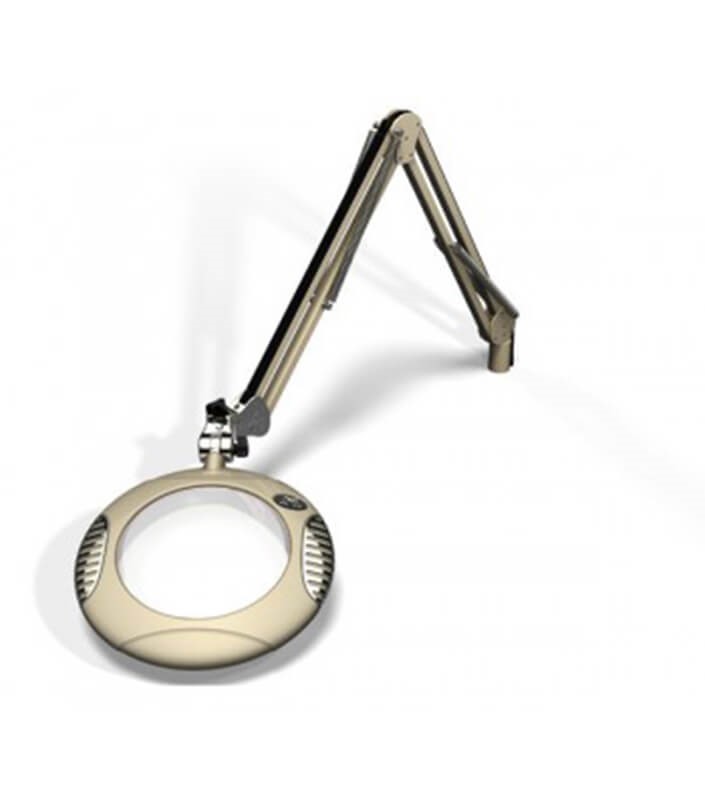 O.C. White 7.5 " Green-Lite LED Magnifier; 4 Diopter (2X); ESD Safe; Intuitive Lighting Controls with 3 Bank LED Adjustability; Die-Cast Aluminum Construction\\\, Crown White Optical Glass; Table Edge Clamp; 43 " Reach; 100-240v (50/60hz); 12 LED Array only consumes 8W on high. Shadow White