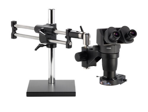 Ergo-Zoom Stereo-Zoom Ergonomically Adjustable Microscope; Wide 10X Eyepieces; Standard Range 8-50x (up to 200X with optional parts); 16" Tall Ball Bearing Base; Easy 360 main body rotation; 0-35 adjustable angle eyepiece; 1x plan APO at no charge ($399 value); 5 Diopter Adjustable eyepieces to correct individual eyesight variations; CMO Microscope; ESD Safe Standard; Micro-Lite LV2000-B LED Ring Light