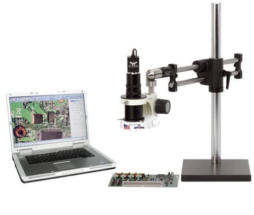 MacroZoom Digital Video Inspection System; Standard magnification range of 1-60x Magnification (up to 120X w/ options); Variable Focal Design Allows Unlimited Working Distance; 5MP Ultra-Cam II Hybrid HDMI/USB Digital Camera with Advanced Imaging & Measurement Software Suite. AIMS includes on-screen controls via wireless mouse for Image/Video Capture\\\, Live vs. Frozen Image comparison\\\, Calibrated Measurement\\\, Labeling\\\, Digital Noise Reduction\\\, Export to Excel\\\, and more; Now included FREE ($595 Value) Exclusive PC suite software extension combines all features listed above\\\, along with Extended Depth of Field Stacking\\\, Image Stiching\\\, and more (PC needed); 24'' Double Ball Bearing Base; Micro-Lite LV2000-B LED Ring Light; No monitor included