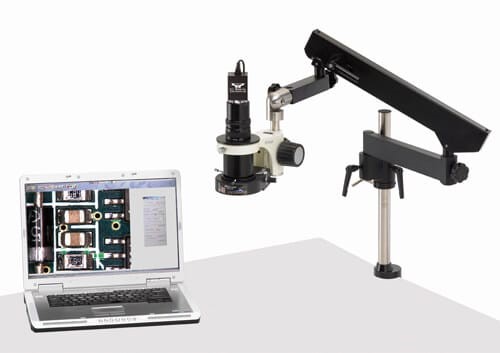 MacroZoom Digital Video Inspection System; Standard magnification range of 1-60x Magnification (up to 120X w/ options); Variable Focal Design Allows Unlimited Working Distance; 5MP Ultra-Cam II Hybrid HDMI/USB Digital Camera with Advanced Imaging & Measurement Software Suite. AIMS includes on-screen controls via wireless mouse for Image/Video Capture\\\, Live vs. Frozen Image comparison\\\, Calibrated Measurement\\\, Labeling\\\, Digital Noise Reduction\\\, Export to Excel\\\, and more; Now included FREE ($595 Value) Exclusive PC suite software extension combines all features listed above\\\, along with Extended Depth of Field Stacking\\\, Image Stiching\\\, and more (PC needed); Articulating Arm Assembly; Micro-Lite LV2000-B LED Ring Light; No monitor included