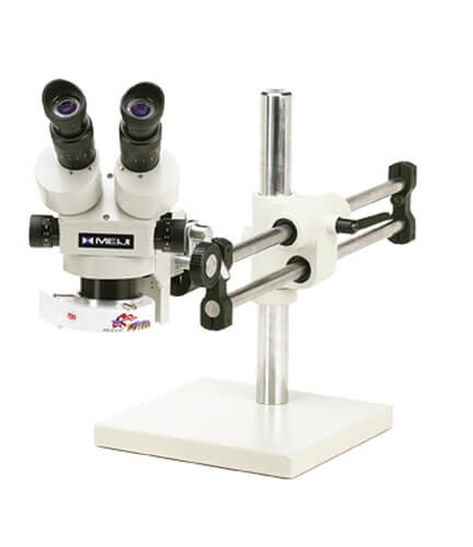 Meiji Stereo-Zoom Microscope System; Standard Range 3.5-45x; 10X Eye Pieces; 0.5x Lens; FL1000 Fluorescent Ring Illuminator