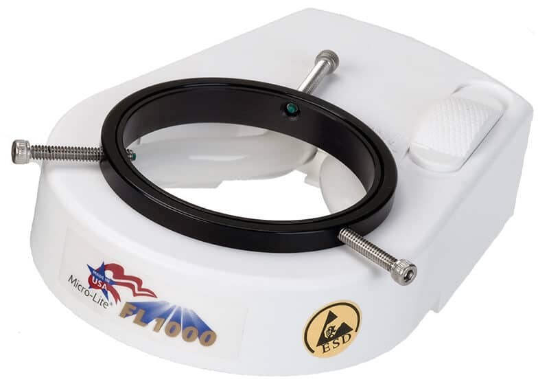 Micro-Lite High/Low Fluorescent Electronic Ring Illuminator; Patented "flicker-free" Ballast Technology eliminates light flickering\\\, allows more lumen per watt used; 120v; 60mm ID; ESD Safe Standard; 5 Year Warranty; Made in America