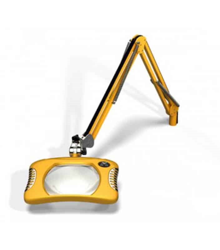O.C. White 7 x 5.25 " Green-Lite Rectangle LED Magnifier; 4 Diopter (2X); ESD Safe; Intuitive Lighting Controls with 3 Bank LED Adjustability; Die-Cast Aluminum Construction\\\, Crown White Optical Glass; Table Edge Clamp; 43 " Reach; 100-240v (50/60hz); 12 LED Array only consumes 8W on high. Blazing Yellow