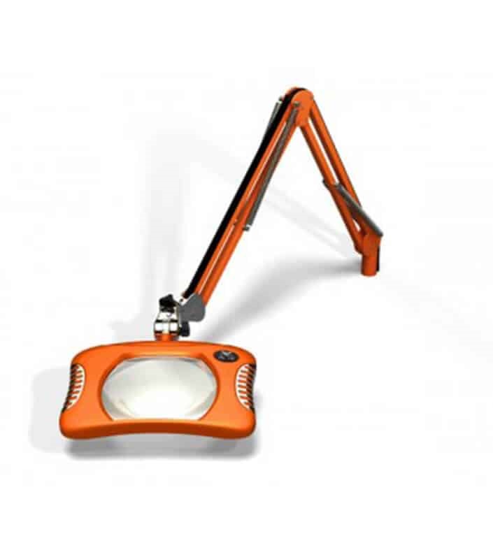 O.C. White 7 x 5.25 " Green-Lite Rectangle LED Magnifier; 4 Diopter (2X); ESD Safe; Intuitive Lighting Controls with 3 Bank LED Adjustability; Die-Cast Aluminum Construction\\\, Crown White Optical Glass; Table Edge Clamp; 43 " Reach; 100-240v (50/60hz); 12 LED Array only consumes 8W on high. Brilliant Orange