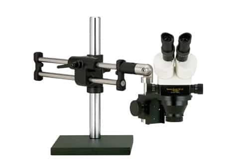ProZoom 4.5 Stereo-Zoom Microscope; Extra-Large (22mm) 10X Eyepieces; Standard Range 7-45X (3.5 225X with optional parts); 16" Tall Ball Bearing Base\\\, Easy 360 main body rotation; 90-250mm working distance; 0.5 Auxiliary Objective Lens at no charge ($125 value); 5 Diopter Adjustable eyepieces to correct individual eyesight variations; 45 Eyetube inclination; ESD Safe Standard; NO Light