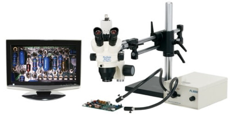 ProZoom 6.5 Trinocular Microscope; Super-Wide (28mm) 10X Eyepieces; ESD Safe Standard; Standard Range 5-65x (up to 390X with optional parts); .3x CCD Adapter; 5MP Ultra-Cam II Hybrid HDMI/USB Digital Camera with Advanced Imaging & Measurement Software Suite and 22" LCD Monitor; AIMS includes on-screen controls via wireless mouse for Image/Video Capture\\\, Live vs. Frozen Image comparison\\\, Calibrated Measurement\\\, Labeling\\\, Digital Noise Reduction\\\, Export to Excel\\\, and more; Now included FREE ($595 Value) Exclusive PC suite software extension combines all features listed above\\\, along with Extended Depth of Field Stacking\\\, Image Stiching\\\, and more (PC needed); 6 Diopter Adjustable eyepieces to correct individual eyesight variations; Greater working distance\\\, Magnification range\\\, and Field of View than a traditional microscope; 150w Fiberoptic Dual Point Light (Micro-Lite FL3000-D)