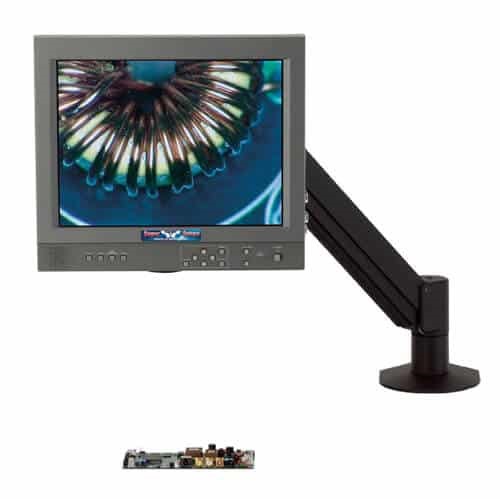 Super-Scope HD Integrated Inspection; Standard magnification range of 1-40X (up to 80X w/ options); Variable Focal Design Allows Unlimited Working Distance. 5MP Hybrid HDMI/USB Camera w/ 12" integrated LCD Monitor; Includes Advanced Imaging & Measurement Software Suite. AIMS includes on-screen controls via wireless mouse for Image/Video Capture\\\, Live vs. Frozen Image comparison\\\, Calibrated Measurement\\\, Labeling\\\, Digital Noise Reduction\\\, Export to Excel\\\, and more; Now included FREE ($595 Value) Exclusive PC suite software extension combines all features listed above\\\, along with Extended Depth of Field Stacking\\\, Image Stiching\\\, and more (PC needed); Articulating Arm Assembly; No light
