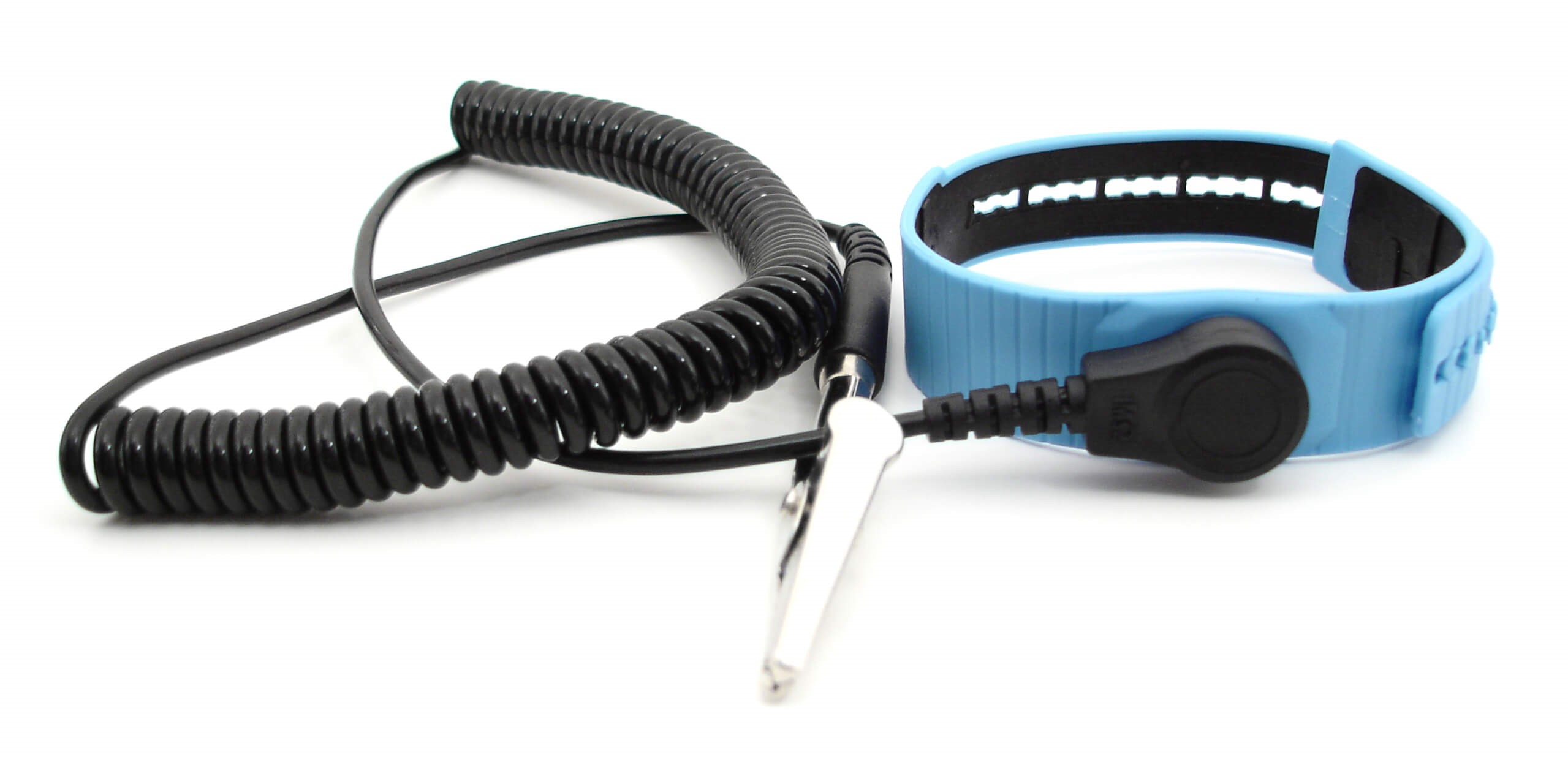 ADJ. BLUE PLASTIC WRIST STRAP 6' COIL 1/8" SNAP -