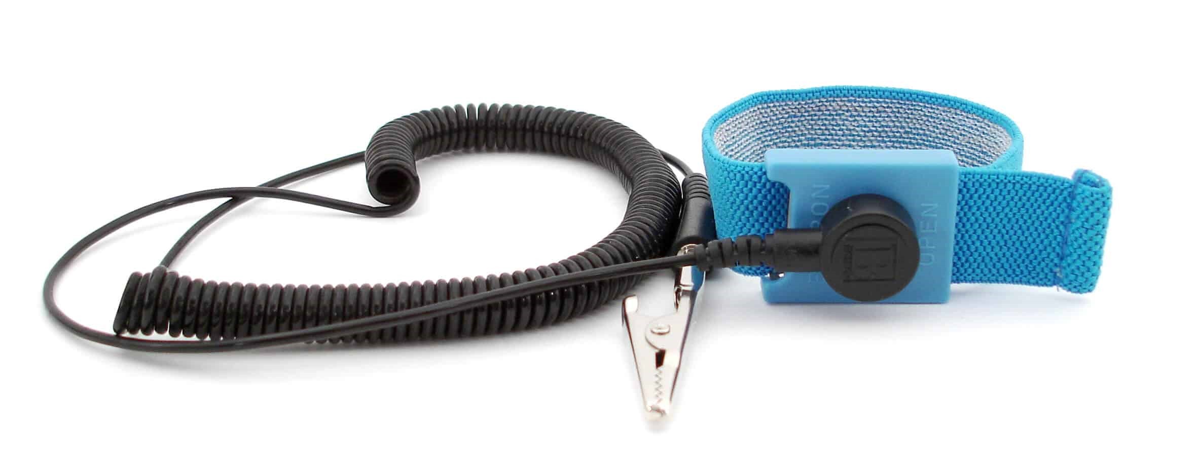 LIGHT BLUE ADJUSTABLE WRIST STRAP SET 6' COIL 1/8" SNAP