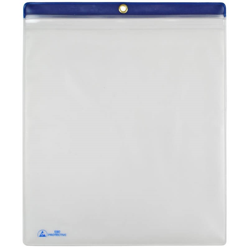 ESD SHOP TRAVELER\, ZIP\, CLEAR\, 10"x12"OD \, BLUE HEADER\,10 PK