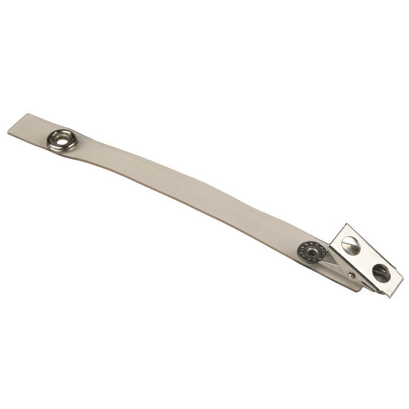 STRAP CLIP\, EXTRA LONG\, 5-3/4IN\, CLEAR VINYL