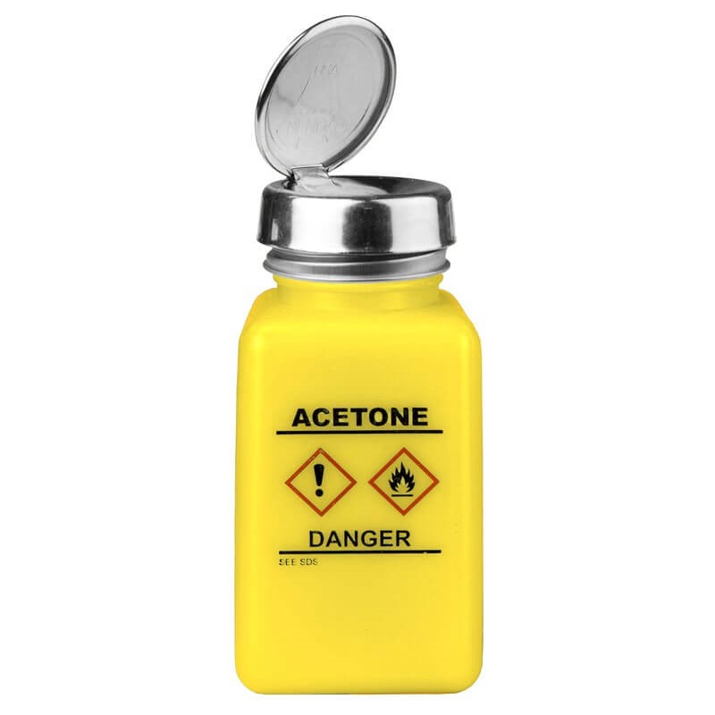 DURASTATIC YELLOW HDPE BOTTLE\, ONE-TOUCH\, 6 OZ\, HCS LABEL ''ACETONE''