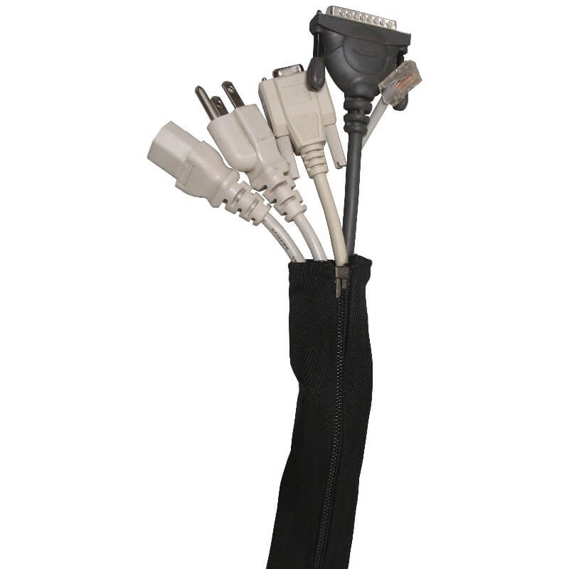 MENDA’s cable covers can help you! This product is a modular cover that is 54” long and can easily be cut into three sections or connected to another cover for longer applications. Not only can it help manage your cables\, it also can protect large cables from wear with its unique durable woven material. This product has the capability to zip two covers together in order to make them wider.