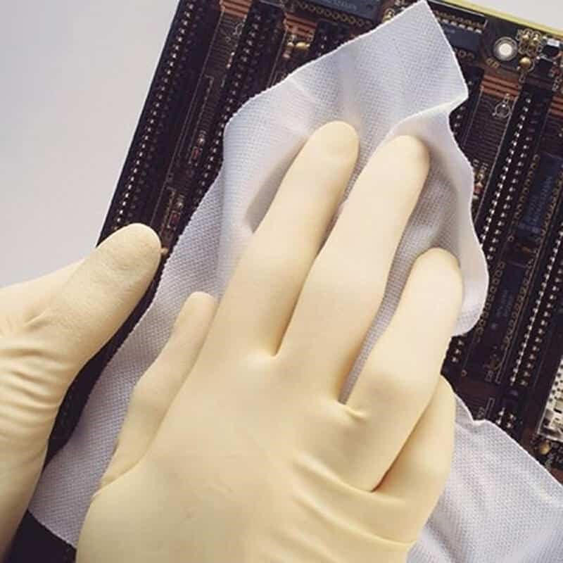 Coventry cleanroom laundered polyester wipes (150 light-weight wipes per bag\, 9" x 9") offer an extra level of protection for critical applications. Our Poly-wipes are made from 100% continuous filament polyester the standard in cleanroom wipes minimizing particle generation. Poly-wipes are laundered in our Class 10 (ISO Class 4) cleanroom\, and are available with our exclusive heat-cut edge sealing process (HC). - Excellent solvent and acid resistance - Monofilament "no-run" construction does not generate loose fibers - Excellent durability for cleaning rough\, abrasive\, or irregular surfaces - Low ionic\, nonvolatile residue and particle contamination - Good absorbency - Available in heavy or light weight styles - Processed and packaged in a Class 10 cleanroom - Clean and polish critical surfaces both metal and non-metal - Aerospace Production Areas - Disk Drives Production Areas - Pharmaceutical / Biotechnical Production Areas - General Cleanroom Cleaning - Semiconductor Wafer Fabs