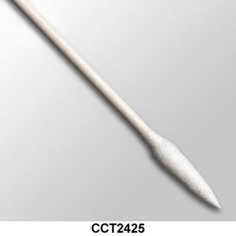 The Cottontips MicroPoint Cotton Swab (25 swabs) consists of cotton fibers which are tightly wrapped around a handle. The handle of this swab is made from a special\, clean room grade composite material. Because of the tightly wrapped head\, there is very little linting. These cotton swabs have excellent absorbency\, as well as high strength especially when saturated with water. This swab is designed for cleaning applications where absorbency is critical. - Cleaning surfaces\, removing flux residues\, removing contaminants - Applying oils\, adhesives\, fluxes and lubricants - Tightly wrapped cotton head construction - Small size for delicate precision cleaning - Extremely low linting - High absorbency capacity and rate - Good solvent compatibility - Sharp point - Non-static generating