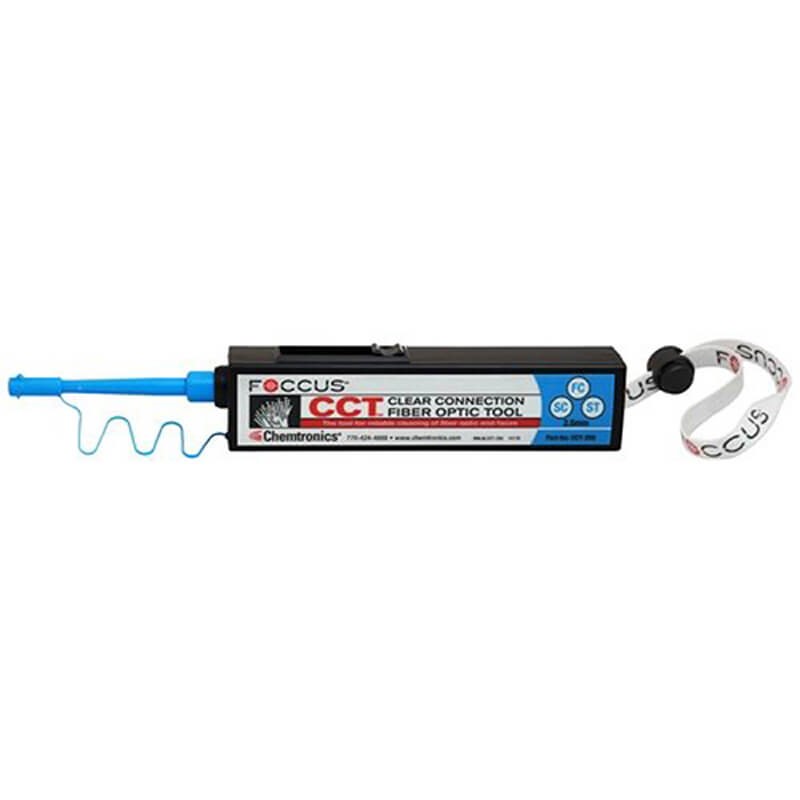 CCT Clear Connection Tool (Cleaning tool for 2.5mm FC\, SC and ST connectors. 4 per case) used with the FOCCUS MX Precision Cleaning Pen provides a fast\, simple method of fiber optic cleaning. End faces in bulkheads or on cable assembles are both effortlessly cleaned the first time . . . every time. CCT has an easy to use mechanism that advances fabric over a cleaning tip with just a short push and click of the tool. Using the CCT with the FOCCUS MX Precision Cleaning Pen provides for fast\, easy and repeatable Combination Cleaning. CCT Cleaning Kits come with an MX Precision Cleaning Pen. Wet the CCT fabric tip with the MX pen\, insert the CCT tip into the connector\, and push in the tool 1 click to advance the fabric from wet-to-dry\, perfectly cleaning the end-face. Combination Cleaningeliminates all debris and contamination the first time\, avoiding expensive rework and truck-rolls from bad connections. Combination Cleaning is industry proven\, exceeding IEC 61300-3-35\, IEC TR62627-01\, and meeting Telcordia GR-2923-CORE and SAE Aerospace AIR6031. - Cleans connectors on back plane and on jumpers - Uses Combination Cleaning process for first time cleaning\, every time - Effective for the widest range of contaminants - Easy to use for quick and reliable cleaning - Rugged and durable\, great for all work sites - Cleans UPC and APC connectors - Up to 800 cleanings per kit -- 33% more than other tools! - End-face connector cleaning - Cleans SC\, LC or MPO connectors - Cleans UPC and APC connectors - Cleans jumper connectors or backplanes