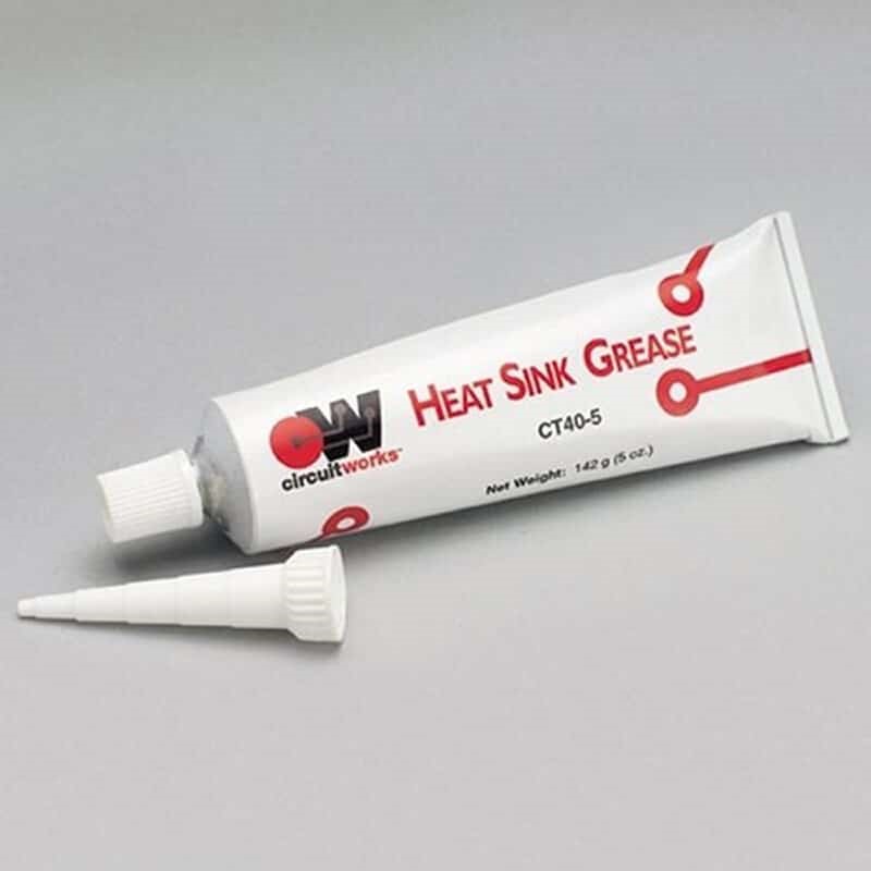 CircuitWorks Heat Sink Grease silicone compound (5 oz) facilitates heat transfer away from electrical/electronic components. This heavy consistency material is thickened with a heat conductive metal oxide filler to maintain a positive heat sink seal in electrical/electronic equipment. - Facilitates heat transfer between circuit components and heat sinks - Excellent thermal and dielectric properties - Will not dry out\, harden\, or melt - Noncorrosive and nonflammable - Silicone-base - Thermally stable from -52 F (-46 C) to 603 F (317 C) - Meets MIL-DTL-47113D Type I