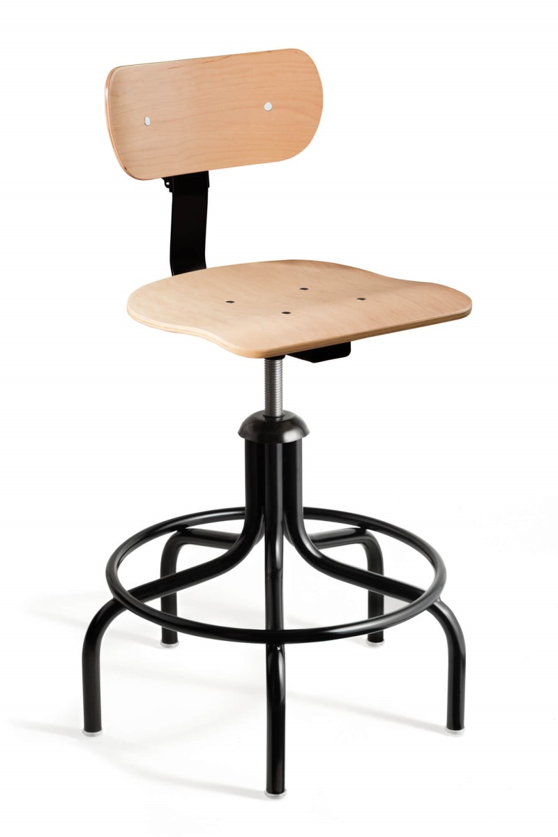 Maple Plywood Chair, Swivel II, 5-legged Round Black Tubular Steel Base w/19" Welded Footring, 22"-27" Seat Height Adj., 300lb Weight Capacity, 12yr Warranty / Color Options: Maple / Compatible Arms: Not Available / Compatible Casters: CAR5-2I