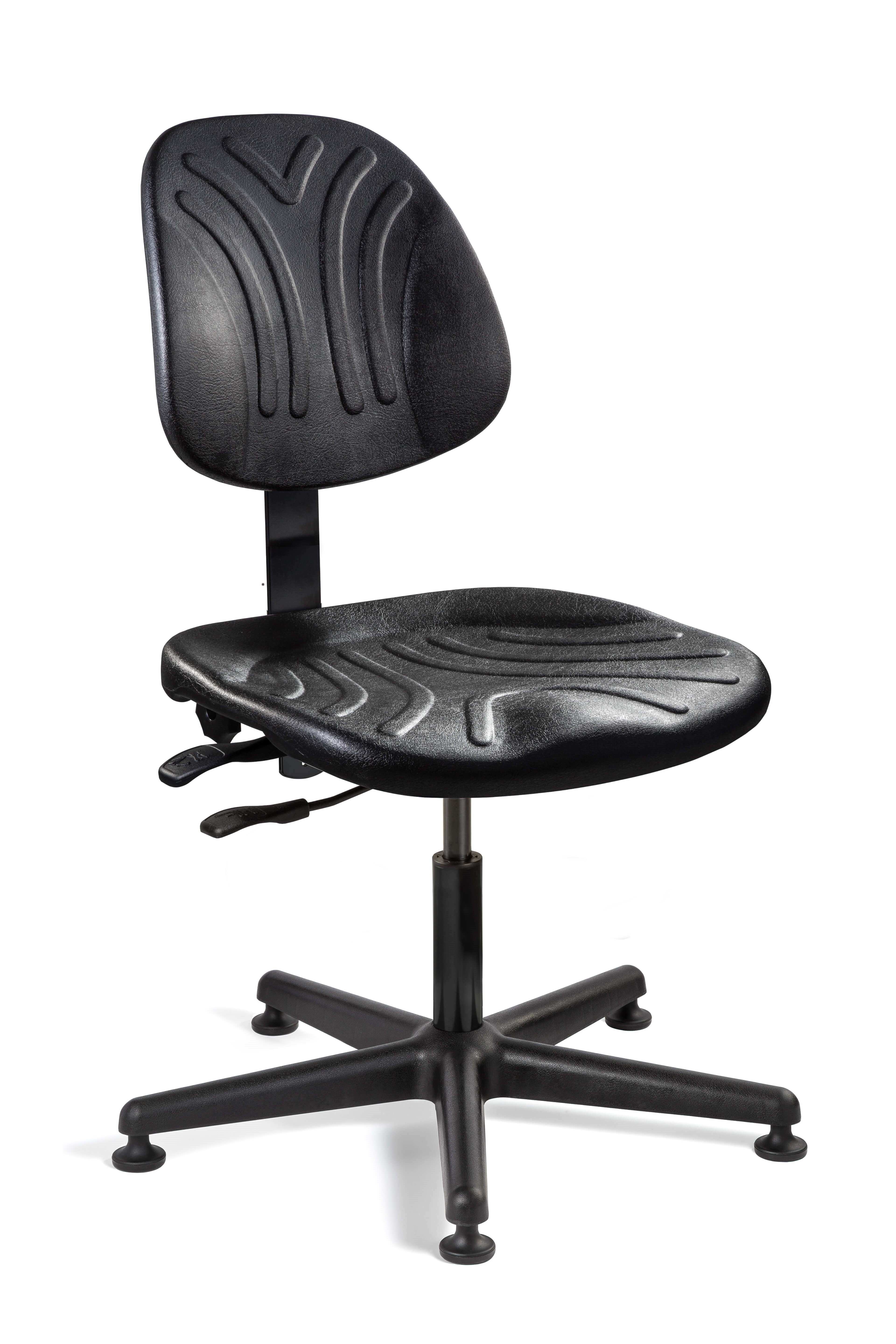 Dura Heavy-Duty Black Polyurethane Chair, Articulating Seat & Back Tilt, Black Nylon Base, Mushroom Glides, 15" - 20" Seat Height Adj., 350lb Weight Capacity, 12yr Warranty / Color Options: Black Polyurethane / Compatible Arms: AA / Compatible Casters: 3750S/5