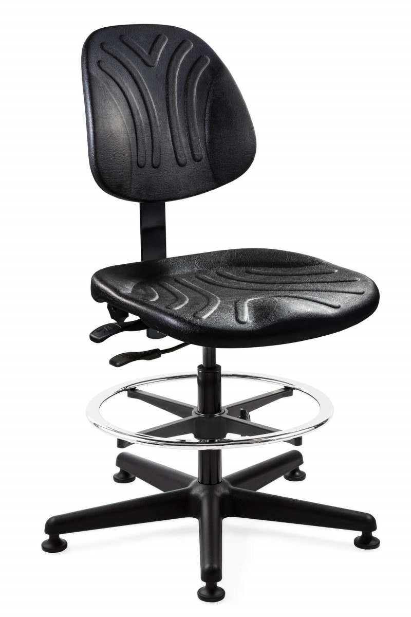 Dura Tall Height Heavy-Duty Black Polyurethane Chair; Articulating Seat & Back Tilt; Black Nylon Base w/Adjustable Footring