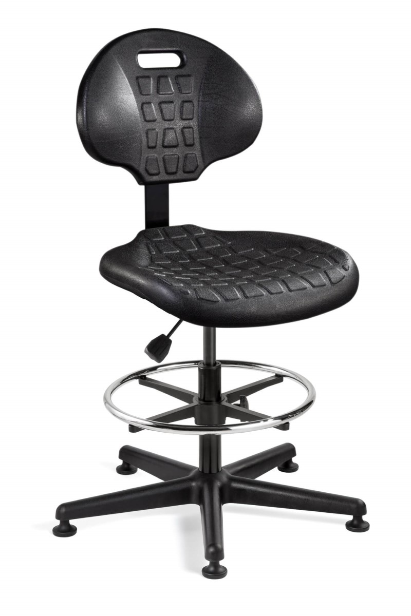 Everlast Black Polyurethane Chair, Non-Tilt, Polished Aluminum Base, 18" Adj. Chrome Footring, Mushroom Glides, 20.5" - 30.5" Seat Height Adj., 300lb Weight Capacity, 12yr Warranty / Color Options: Black Polyurethane / Compatible Arms: Not Available / Compatible Casters: 3850S/5, 3850/5, CAR5, IBCS, RBCS