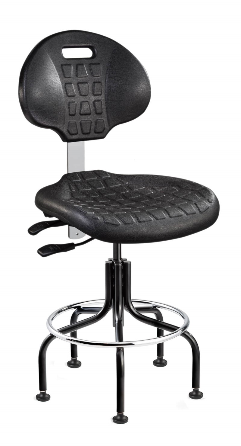 Everlast Black Polyurethane Chair, Articulating Seat & Back Tilt, Black Tubular Steel Base, 19" Welded Footring, Mushroom Glides, 24"-29" Seat Height Adj., 300lb Weight Capacity, 12yr Warranty / Color Options: Black Polyurethane / Compatible Arms: AA / Compatible Casters: CADS/5, CAD/5, CAR5-2I