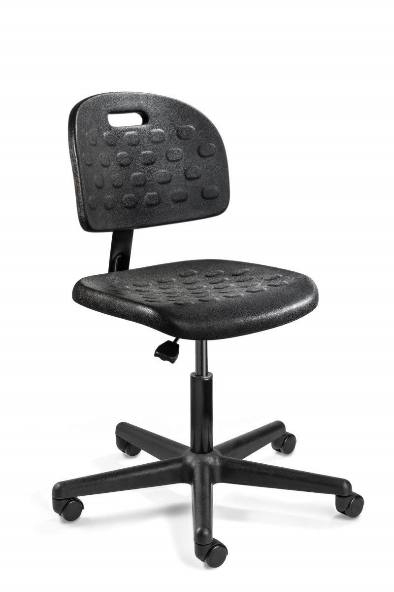Breva Black Polyurethane Chair, Black Nylon Base, Hard Floor Casters, 16"-21" Seat Height Adj., 300lb Weight Capacity, 5yr Warranty / Color Options: Black / Compatible Arms: Not Available / Compatible Casters: Included