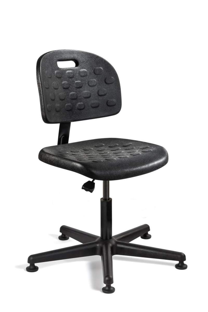 Breva Black Polyurethane Chair, Black Nylon Base, Mushroom Glides, 15"-20" Seat Height Adj., 300lb Weight Capacity, 5yr Warranty / Color Options: Black / Compatible Arms: Not Available / Compatible Casters: Not Available