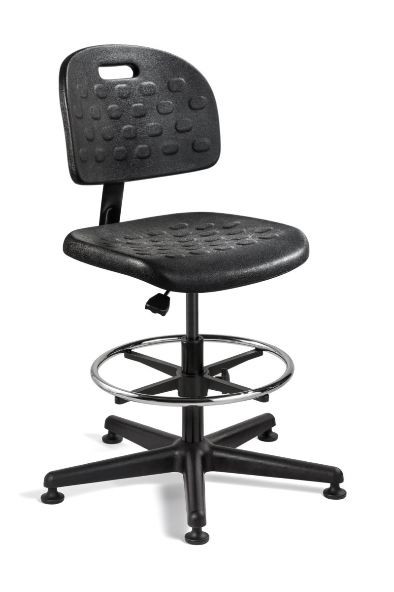 Breva Black Polyurethane Chair, Black Nylon Base, 18" Adj. Chrome Footring, Mushroom Glides, 21-1/4"-31" Seat Height Adj., 300lb Weight Capacity, 5yr Warranty / Color Options: Black / Compatible Arms: Not Available / Compatible Casters: Not Available