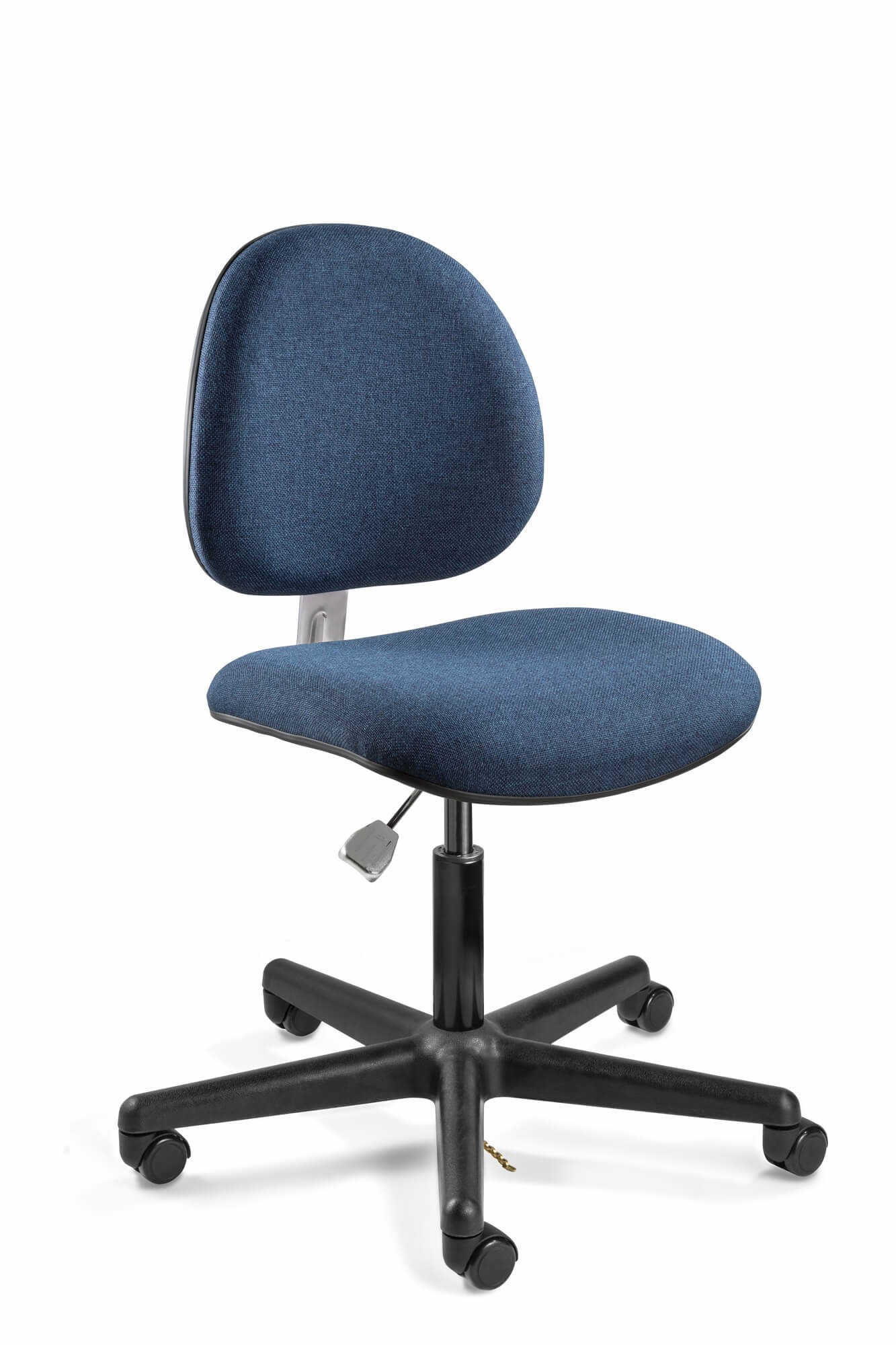 Lexington ESD Navy Blue Fabric Chair w/Contoured Backrest, Black Nylon Base w/Brass Drag Chain, Hard Floor Casters, 17"-22" Seat Height Adj., 300lb Weight Capacity, 5yr Warranty / Color Options: Navy Blue (NVY) / Compatible Arms: Not Available / Compatible Casters: Included