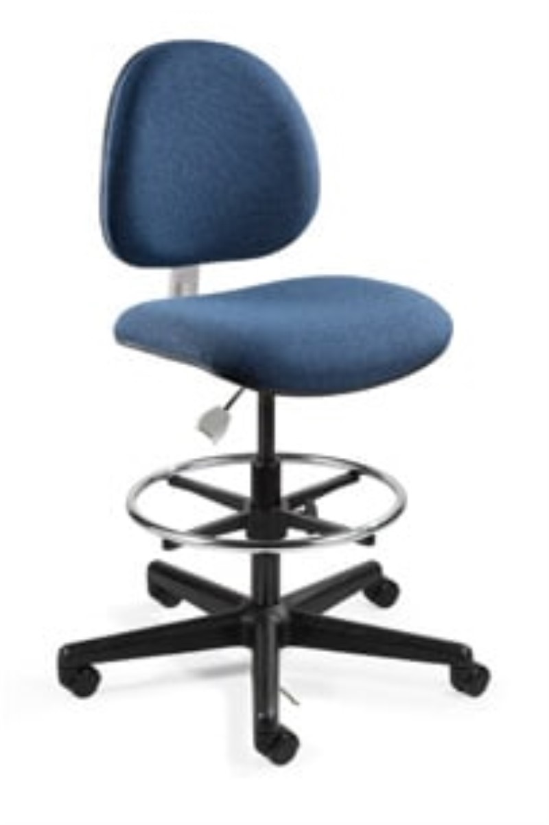 Lexington ESD Navy Blue Fabric Chair w/Contoured Backrest, Black Nylon Base w/Brass Drag Chain, 18" Adj. Chrome Footring, Hard Floor Casters, 24"-34" Seat Height Adj., 300lb Weight Capacity, 5yr Warranty / Color Options: Navy Blue (NVY) / Compatible Arms: Not Available / Compatible Casters: Included