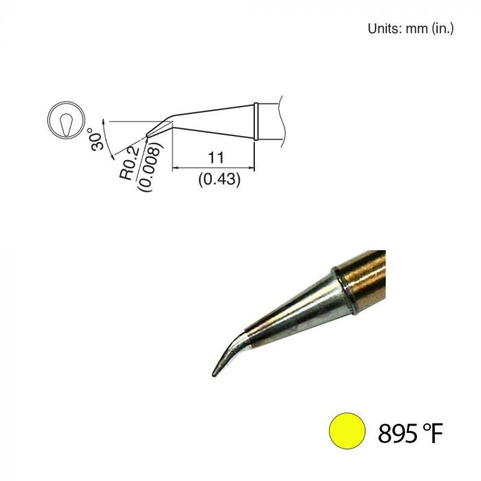 HAKKO TIP,BENT,R0.2mm/30' x 4mm x 11mm,IH,480'C/895'F,FX-1001