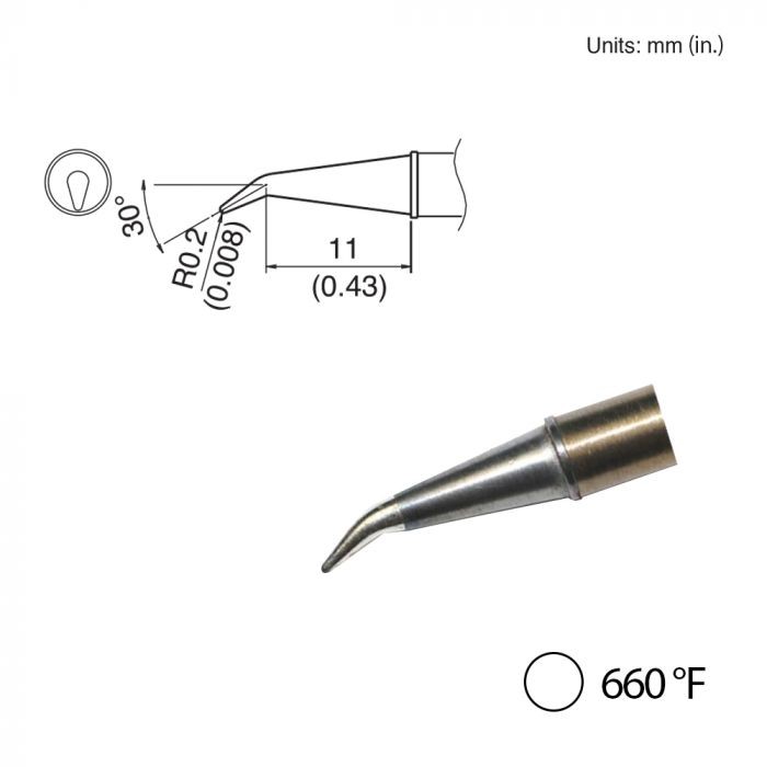 TIP,BENT,R0.2mm/30' x 4mm x 11mm,IH,350'C/660'F,FX-1001