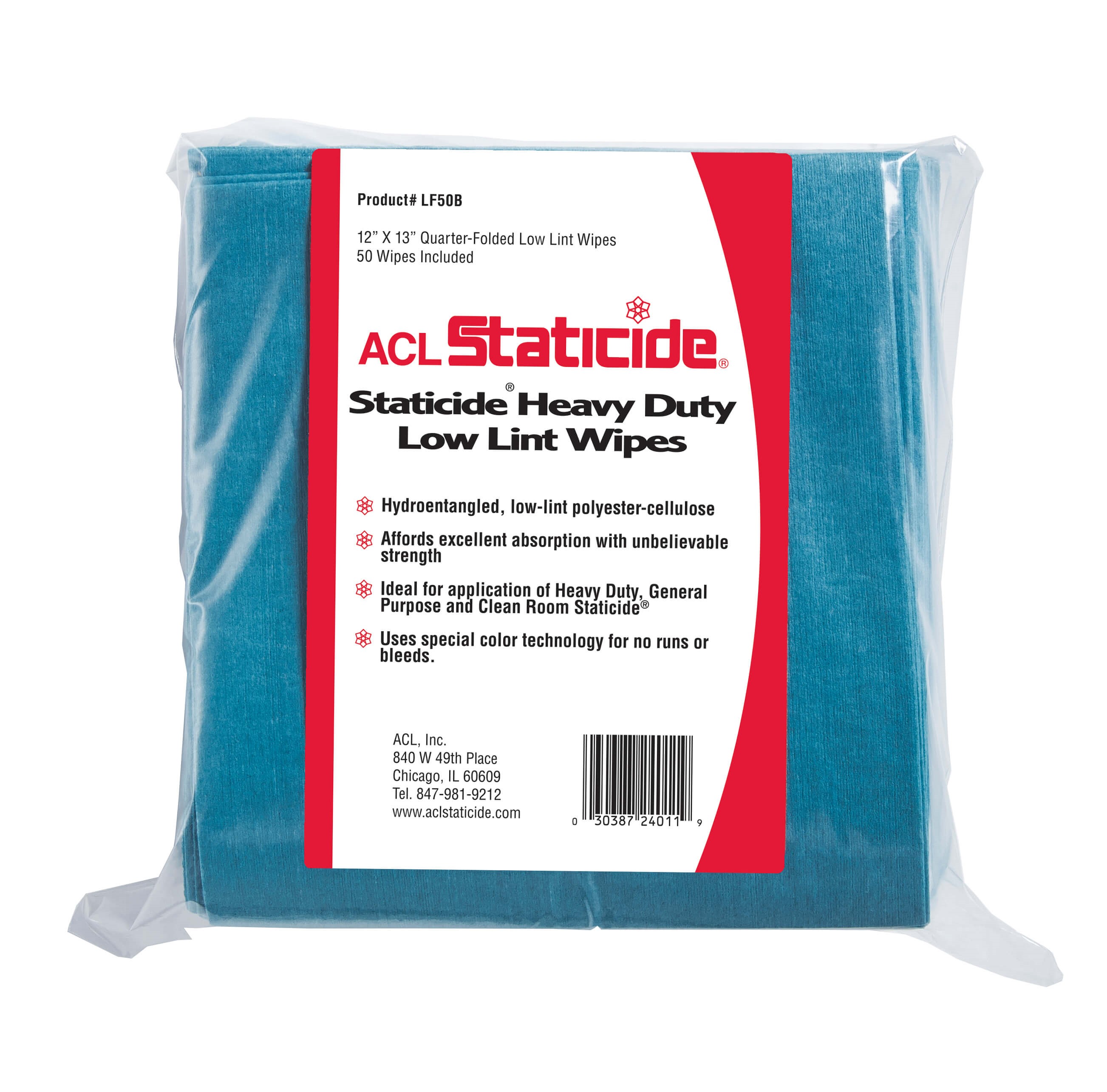 BLUE Heavy Duty Low Lint Wipes 12" x 13", 50 wipes per bag; 12 bags per case; 12 lbs