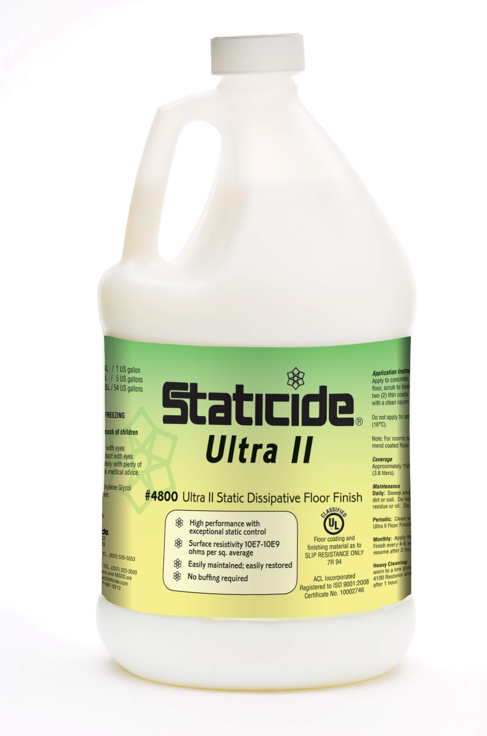 Staticide Ultra II Floor Finish, Gallon; 4 units per case; 38 lbs