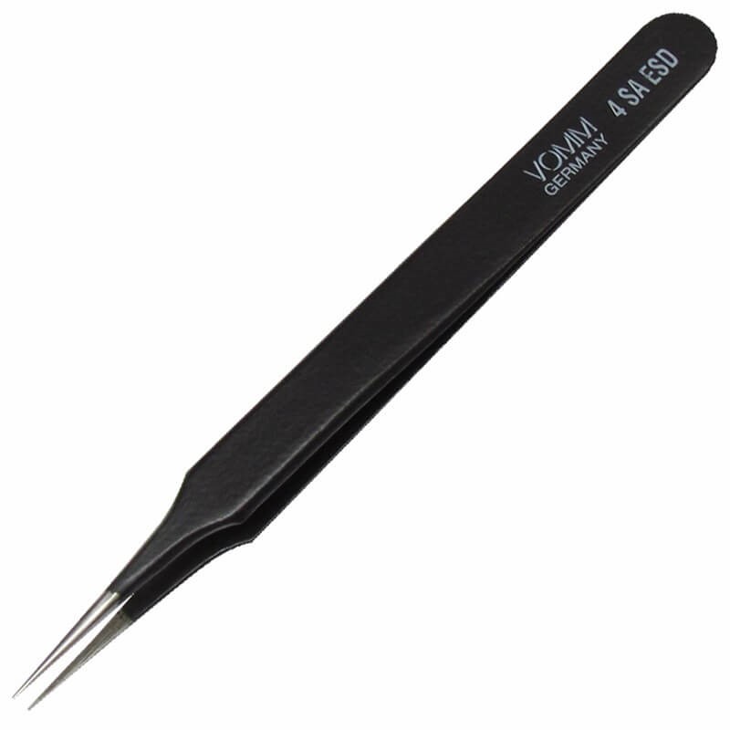 - Description: Vomm brand, tapered tweezers with very fine tips and ESD safe coating