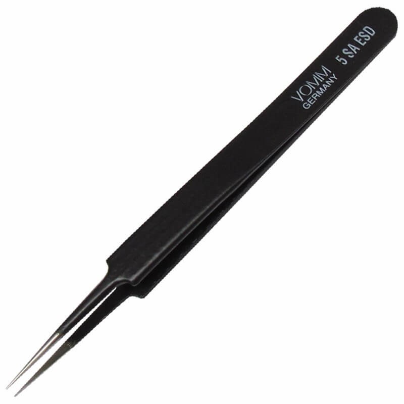 - Description: Vomm brand, extra tapered tweezers with very fine tips and ESD safe coating