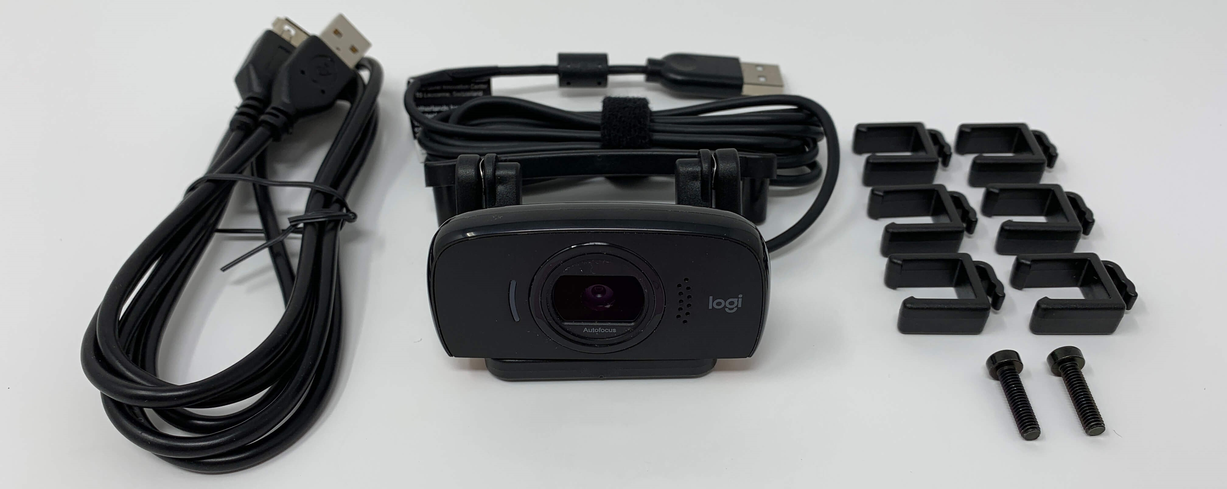 In the Box: 1x bracket and arm for Wave LED, 1x 1.5m USB extension, 6x Wave cable clips, and 1x Logitech C525 HD Camera.