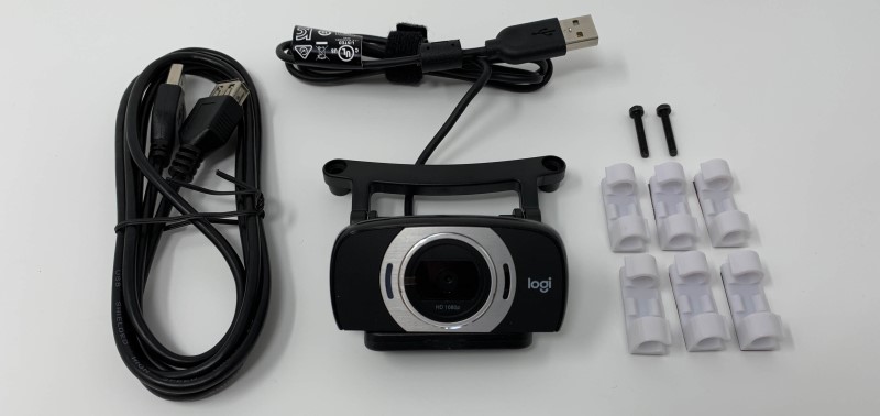 In the Box: 1x bracket and arm for Circus LED, 1x 1.5m USB extension, 8x Circus cable clips, and 1x Logitech C615 Full HD Camera.