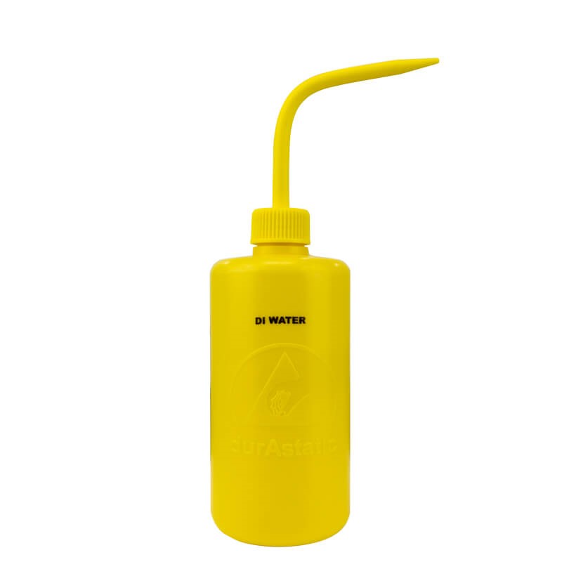 YELLOW WASH BOTTLE, 16 OZ, DURASTATIC, PRINTED 'DI WATER'