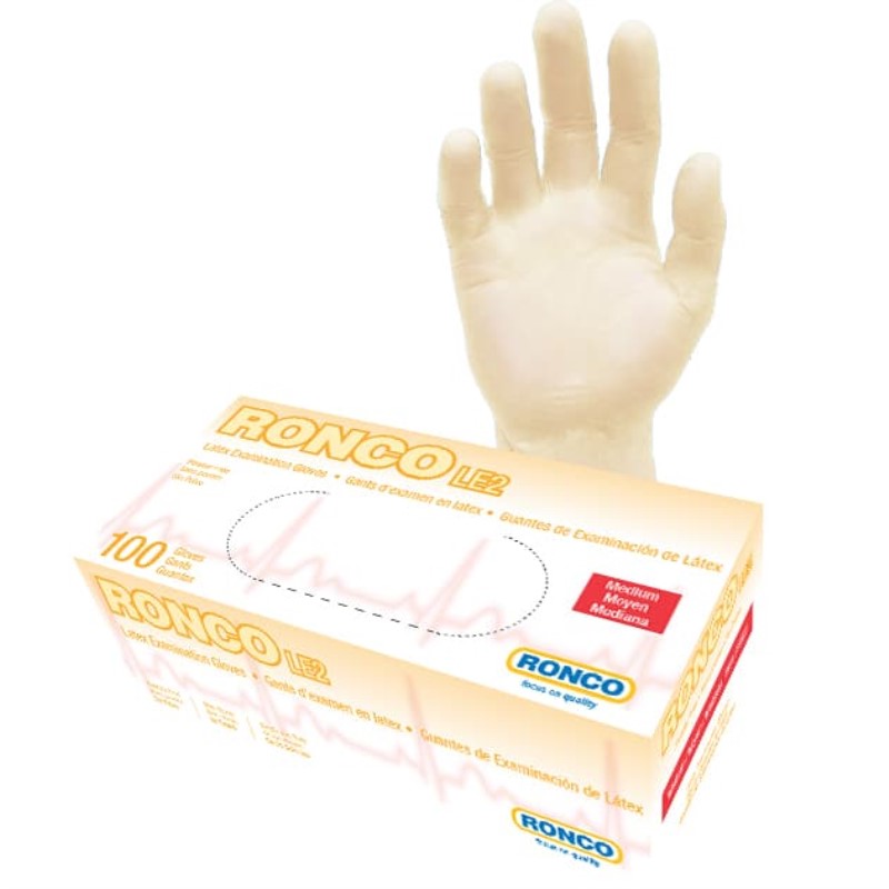 RONCO LE2 Latex Tan Examination Glove Powder Free Medium 100x10